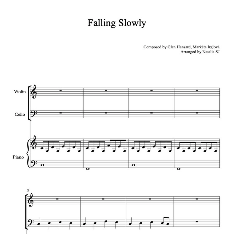 Falling Slowly 三重奏 乐谱 - 小提琴, 大提琴, 钢琴